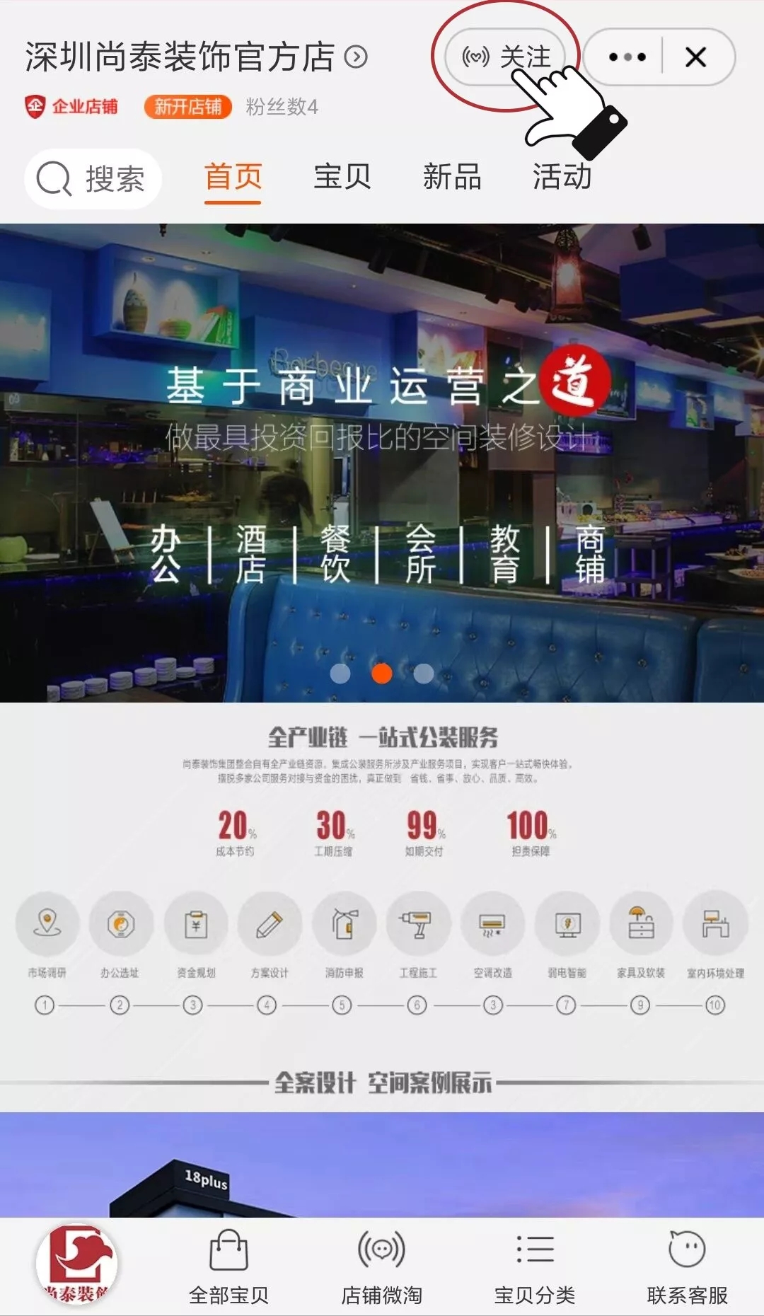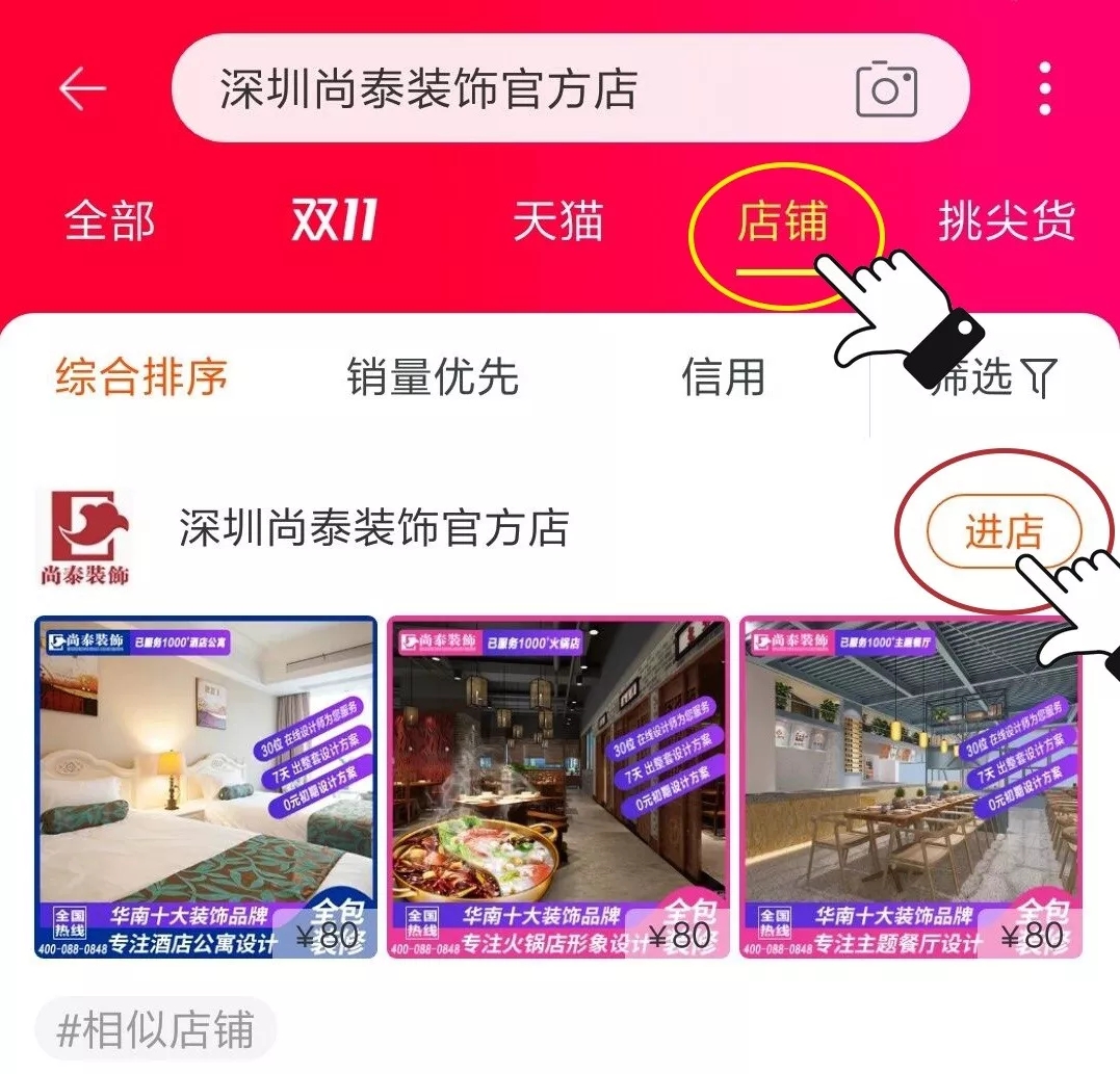 4、進(jìn)入淘寶搜索“深圳尚泰裝飾官方店”,進(jìn)入店鋪并關(guān)注,截圖發(fā)送給客服。