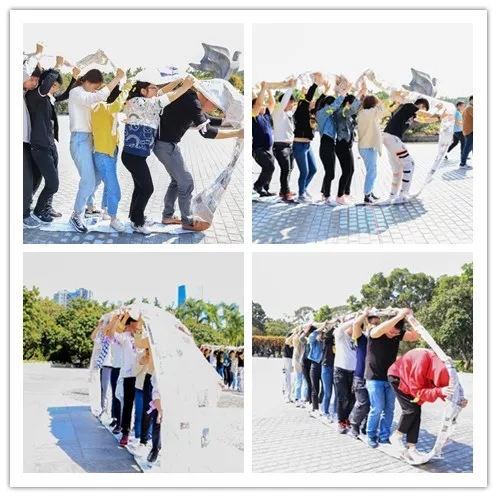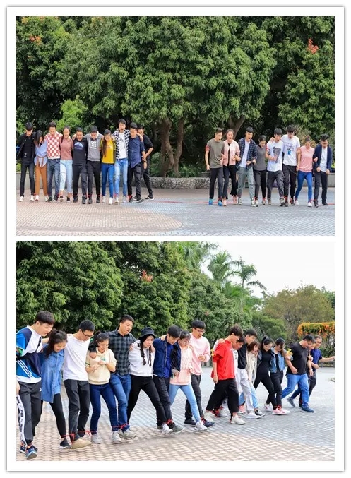全隊(duì)的伙伴用綁腿繩將腳連在一塊,橫向一排,通過側(cè)行和前行規(guī)定的路線,在盡量少的時間內(nèi)從起點(diǎn)到達(dá)重點(diǎn)。在這個項(xiàng)目中,團(tuán)隊(duì)配合是至關(guān)重要的,如何調(diào)整自己與團(tuán)隊(duì)的步伐,稱為團(tuán)隊(duì)成功的關(guān)鍵。