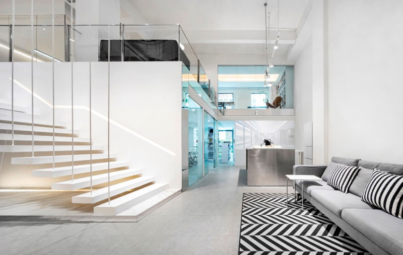 在辦公空間方面,可根據(jù)公司的需要和特點,對空間進行分隔性和夾層處理,從而跳脫普通平層辦公室?guī)淼目臻g單調(diào)感,同時也增加了建筑物的使用面積和空間利用率。