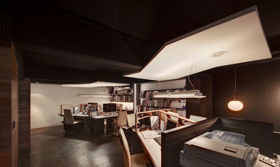 推開大門,以多層次圓天花板造型的門廳作為情緒轉(zhuǎn)換的緩沖地帶,而門廳旁以清透玻璃隔出的會議室兼洽談區(qū),散發(fā)著如家的舒適感,紋理斑駁的木質(zhì)地板與沙發(fā)背墻勾縫精致的熏黑木料質(zhì)感,處處透顯出設(shè)計師獨到的美學(xué)品味。再往內(nèi)走則是工作區(qū)域,性格沈穩(wěn)的風(fēng)格基調(diào),與靠墻的大型書柜相輔相成,釋放著內(nèi)斂的人文氣質(zhì)。工作站設(shè)計為獨特的三向星芒狀,給人隨時都能進行小組會議般的機動感,在明管明線的漆黑天花板襯托下,兩段吊掛式天花板塊如同振翅的羽翼,象征著尚泰裝飾拒絕自我設(shè)限的企圖心。而整個辦公室的設(shè)計,由外觀的精致導(dǎo)入內(nèi)部的多元事務(wù)機能,將情境動線的起承轉(zhuǎn)合,掌握得恰到好處,也寓示著將有更多美好的設(shè)計將由此發(fā)生。