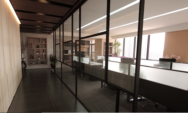 運用黑色鐵件打造的框架,搭配透明玻璃取代實墻,讓空間更具穿透性,放大空間感。