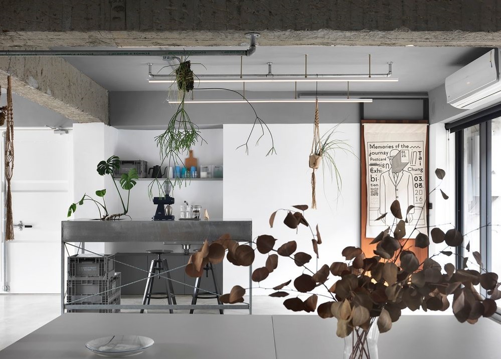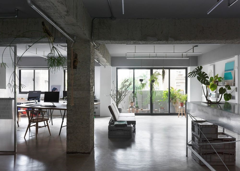 對于辦公空間的要求,就希望該有的機(jī)能都有,并在工作時(shí)能保持心情輕松且視野開闊。所以在格局上我用完全開放的設(shè)計(jì),不想讓墻體擋住了采光跟視野,明亮的空間,加上大大小小植物的點(diǎn)綴,讓工作更有氧活力。