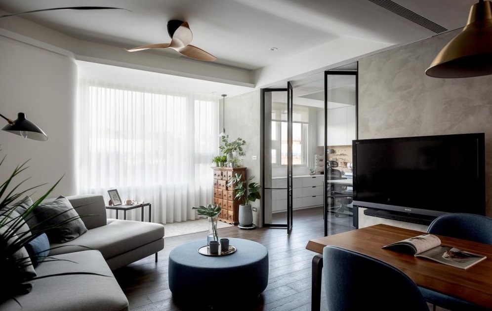 客廳邊獨(dú)立縫紉工作室不僅窗明幾凈,玻璃鐵框折疊門(mén)更讓居家生活與工作空間拉近距離,而開(kāi)放餐廚區(qū)與大餐桌則可讓工作放松,也可轉(zhuǎn)換為工作討論區(qū)。另一案例為美甲店,舒適溫暖的居家布置與商品陳列相輔相成,也方便客戶(hù)挑選,而后方工作區(qū)則以波紋玻璃門(mén)來(lái)提高隱私性。