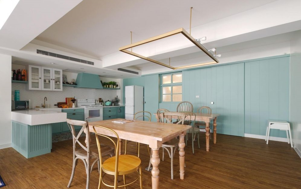 大大的鋼琴矗立客、餐廳之間,仿佛家就是舞臺(tái),無(wú)論是工作或生活隨時(shí)都有浪漫琴音相伴,搭配著鄉(xiāng)村風(fēng)空間風(fēng)格更是唯美,而一旁羅曼蒂克的湖綠色廚房則增添清新氣息。為了滿(mǎn)足上課或發(fā)表會(huì)時(shí)有眾多學(xué)生、家長(zhǎng)等乘坐需求,無(wú)論是客廳或餐廳教學(xué)區(qū)都有大量桌椅,而開(kāi)放格局也讓空間更顯舒適。