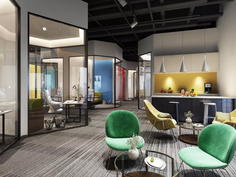 本案作為現(xiàn)代簡約時尚風(fēng)格的網(wǎng)紅直播IT辦公室,尚泰裝飾的設(shè)計定位即是簡潔時尚與科技感,通過部分鮮艷的軟裝搭配結(jié)合天花燈光效果,營造出一個現(xiàn)代感極強(qiáng)的辦公氛圍。