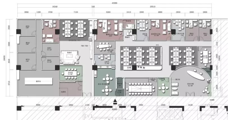 大會議室作為一個集中以及接待的區(qū)域,在布置方面更為大氣,強調(diào)空間的儀式感。
