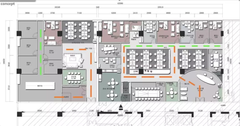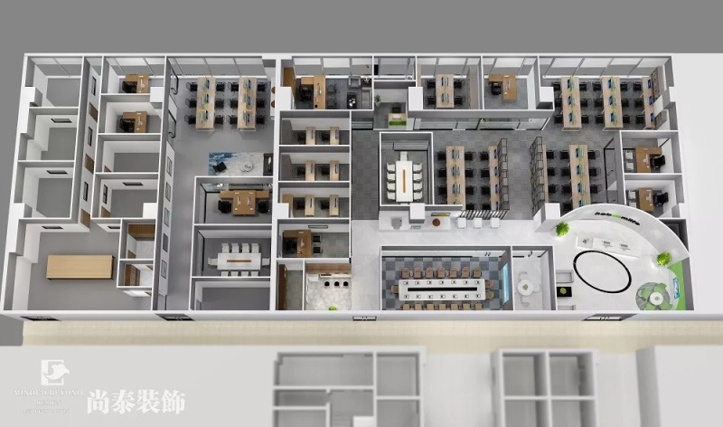 體現(xiàn)了建筑空間原有的美感,整體線條流暢,充分研究辦公空間動線,分析人員辦公行為模式,