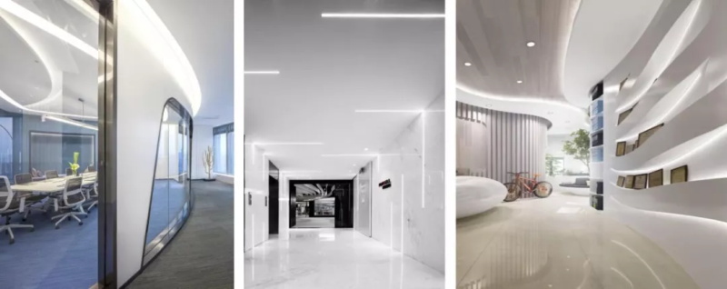 本案設計在滿足辦公空間功能需求的前提下,設計師運用前衛(wèi)、時尚、國際化的設計語言,