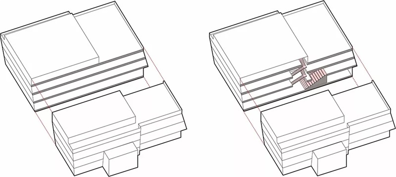 本項(xiàng)目的設(shè)計(jì)、建造過(guò)程到落地建成再次實(shí)踐和驗(yàn)證了艾迪爾所提的“纏繞空間”設(shè)計(jì)理論。即從重視單獨(dú)空間的表達(dá)而轉(zhuǎn)向強(qiáng)調(diào)多重空間的滲透關(guān)系;從重視大體量建筑的象征符號(hào)轉(zhuǎn)向人性化尺度的微場(chǎng)景營(yíng)造;從重視功能聯(lián)系的純粹路徑轉(zhuǎn)向多維度趣味的復(fù)合鏈接模式。