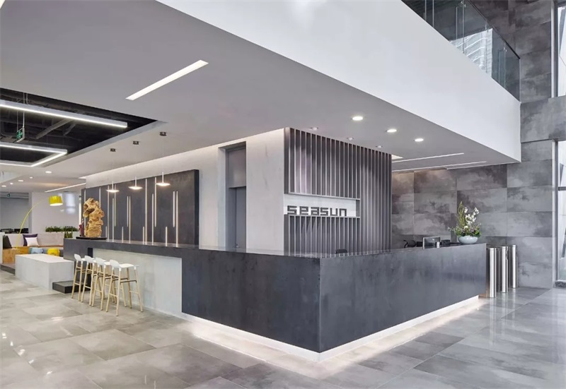 黑白灰的飾面風(fēng)格洗練純粹,搭配通透潔凈的玻璃扶擋、色調(diào)柔和的拼木階梯及簡(jiǎn)單綠植,使整個(gè)內(nèi)部空間層次豐富飽滿,同時(shí)與觀者產(chǎn)生純凈自然的共鳴。建筑內(nèi)部使用者外可觀海,內(nèi)可共享通高中庭空間的層次趣味,縱橫穿行其中可感受多場(chǎng)景的辦公空間氛圍。