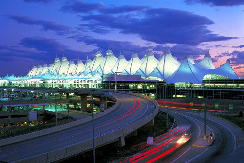 美國面積最大及全世界面積第二大的機場,已經(jīng)有18年的運營歷史,是美國最為繁忙的機場之一。此機場的特別之處在於屋頂用特殊布料覆蓋及采用張力結(jié)構的設計,整個屋頂用34根立柱和10英里長的鋼纜支承,令人聯(lián)想到冬天受冰雪覆蓋的落基山脈。