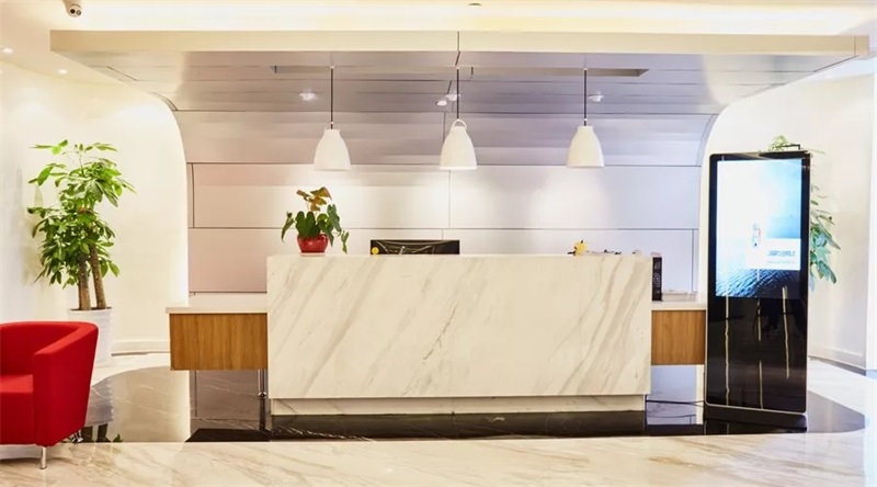 前臺主要采用了大面積的大理石來做點綴,在視覺上給人一種高端大氣的即視感,同時在燈光上采用柔亮的色系,符合當(dāng)下人群的心理需求。