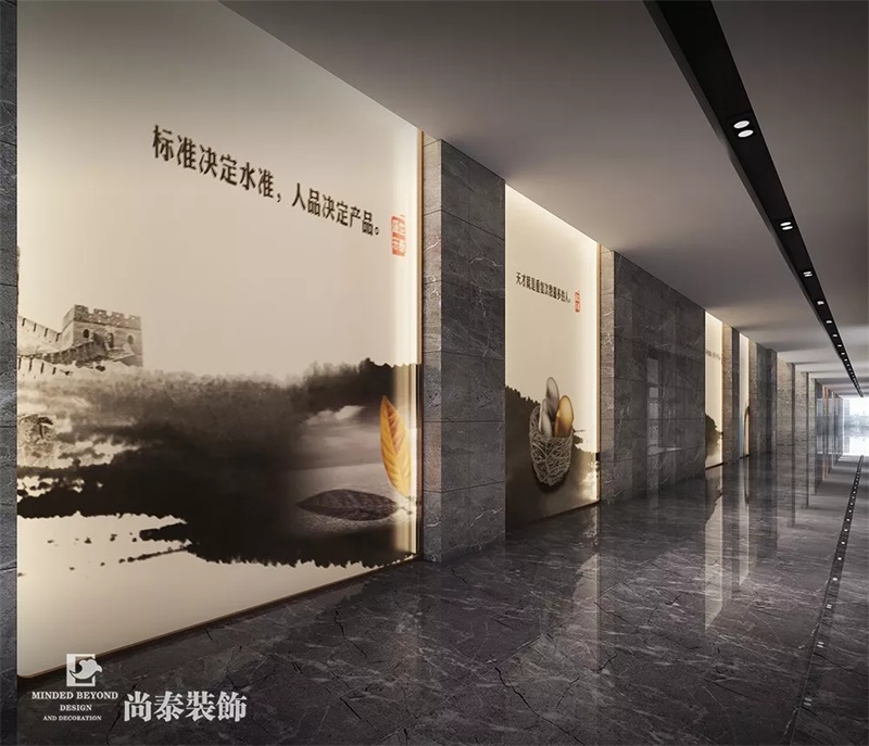 公司走廊過道在設(shè)計的時候,同樣也是采用了大理石為主要的墻面和地板,讓整體空間低調(diào)中透露著奢華,另外在墻壁上嵌入了裝飾柜,彰顯了不凡的品味。