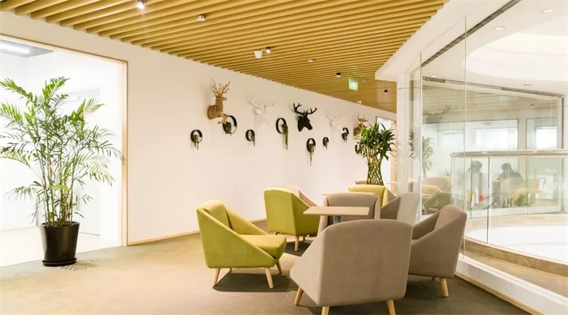 辦公區(qū)是每天員工從事腦力活動的場所,員工每天都需要在這邊為公司創(chuàng)造價值,所以在設(shè)計的時候需要格外用心。設(shè)計師經(jīng)過溝通,整體的色調(diào)采取了當(dāng)下最流行的“環(huán)保色”綠色,另外在走到附近采用了小面積的植被綠化帶,使得員工在高強度的工作下可以活躍思維,提高整體的企業(yè)效率。