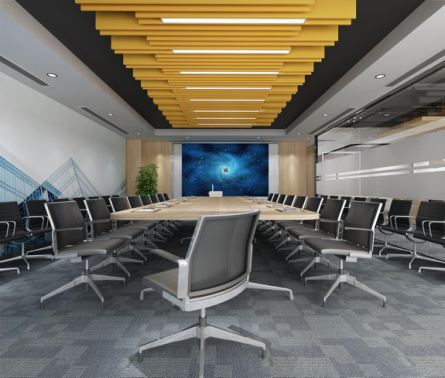 來(lái)到會(huì)議室,硬朗的黑色座椅、白墻、灰色地毯,始終銜接現(xiàn)代工業(yè)風(fēng)的設(shè)計(jì)靈魂,把會(huì)議室的嚴(yán)肅高效表達(dá)了出來(lái)。
