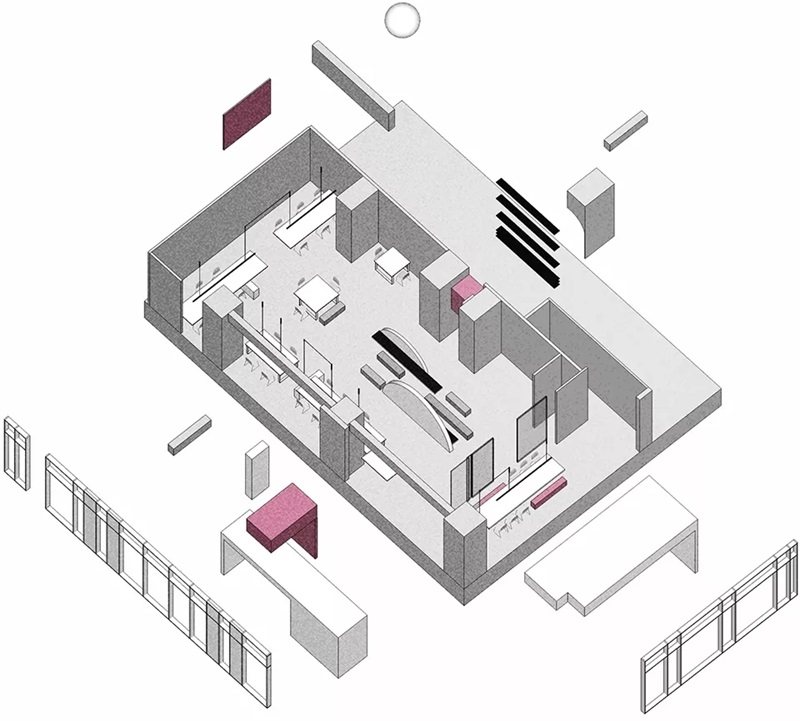 為“形色界”辦公室探索出屬于另一個未知的“界”。在空間中強調(diào)方與圓的對比和沖突、