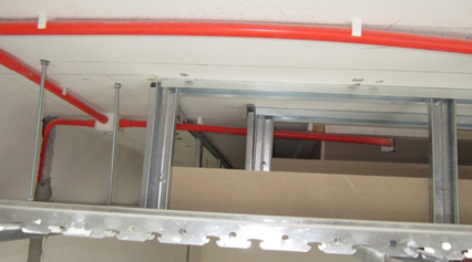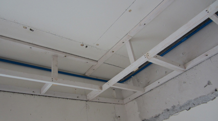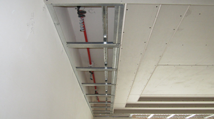輕鋼龍骨阻燃材料 輕鋼龍骨具有極佳防火性能,因此除了極少數(shù)特殊情況外,尚泰在吊頂工藝上實(shí)現(xiàn)了全輕鋼龍骨造型 | 木龍骨膨脹型防火涂料 在某些特殊造型需要使用木龍骨時(shí),外表層將全面涂刷膨脹型防火涂料,它在受熱時(shí)分解生成泡沫狀,在表面形成保護(hù)層,隔絕與空氣的接觸,使火焰熄滅 | |