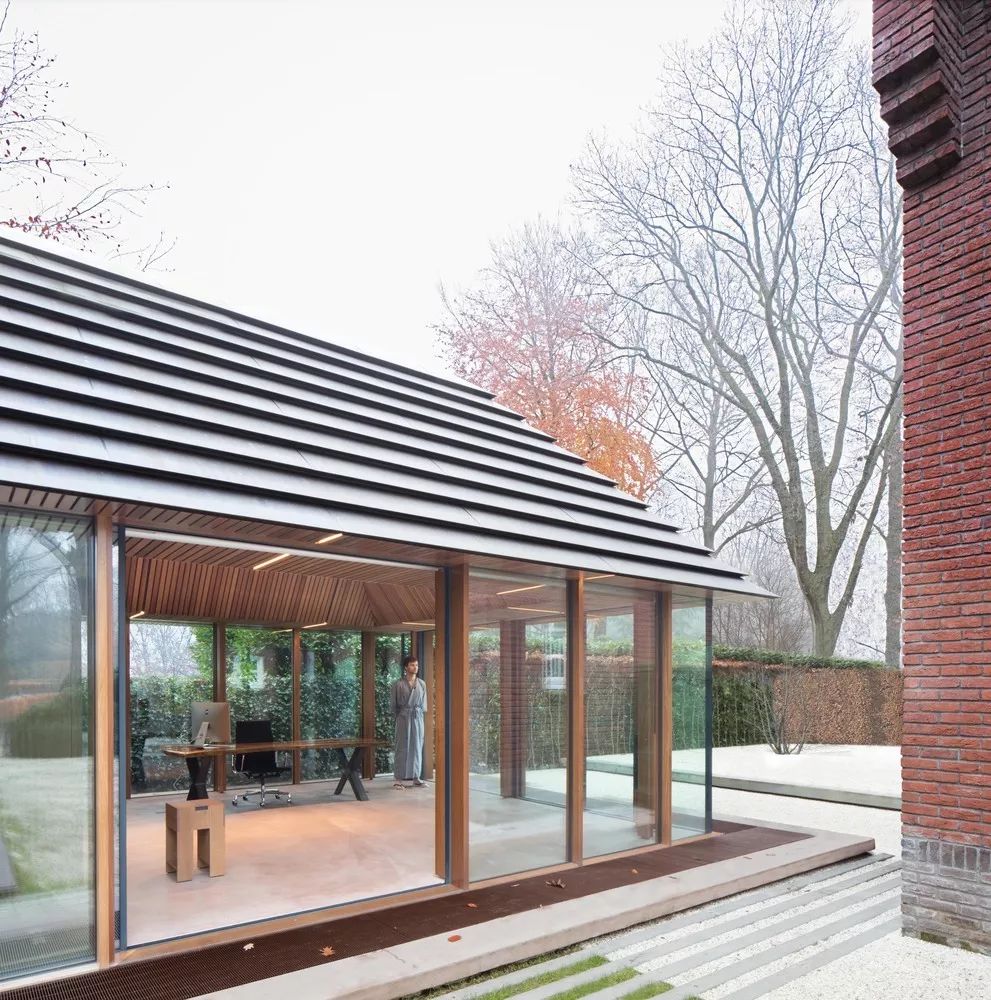 日式的建筑總有其獨特的魅力,散發(fā)著寧靜和雅致。這間日本風(fēng)格的小辦公室位于一個風(fēng)景優(yōu)美的公園內(nèi),設(shè)計采用了全玻璃幕墻來作為室內(nèi)和室外空間的隔離,使得視覺上的景色得以延伸,不管什么時候都可以在室內(nèi)觀賞到室外美麗的風(fēng)景。