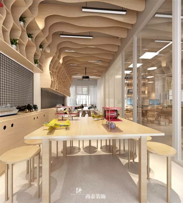 ?本案為南荔工坊的深圳辦公室裝修設計,客戶希望最大程度上利用好有限的空間,為員工們和來此學習創(chuàng)客知識的青少年們提供良好的氛圍和環(huán)境。尚泰設計師營造了一種柔和、溫暖和流暢的氛圍,可以讓員工在工作時更加輕松,更富有激情;也能夠讓青少年們激發(fā)思維,進而更高效的學習知識與技能。