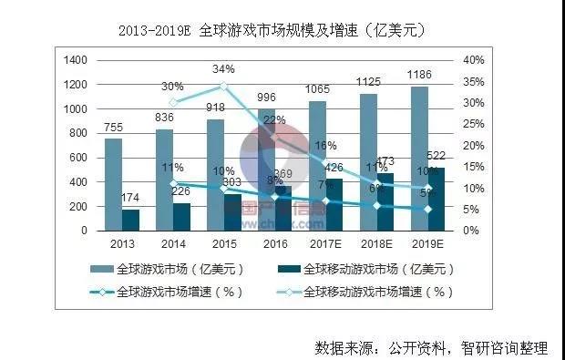 2016 年全球游戲市場規(guī)模 達到 996 億美元,預計未來 3 年的年均復合增長率約 6.0%,增長平穩(wěn);其中移動游戲(手 游、平板)達到 369 億美元,未來 3 年的年均復合增速率約 12.3%。移動游戲市場帶動全球 游戲市場穩(wěn)定增長。從全球視角看,未來移動游戲將進一步擠占主機游戲和 PC 游戲市場份額,預計 2019 年移動市場分額將由 2016 年的 37%提升到 44%。